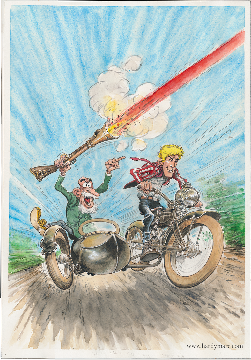Illustration pour la couverture de l'album Commando fantôme. Dimensions: 31,8 x 45,9 Encre de chine, aquarelles & gouaches