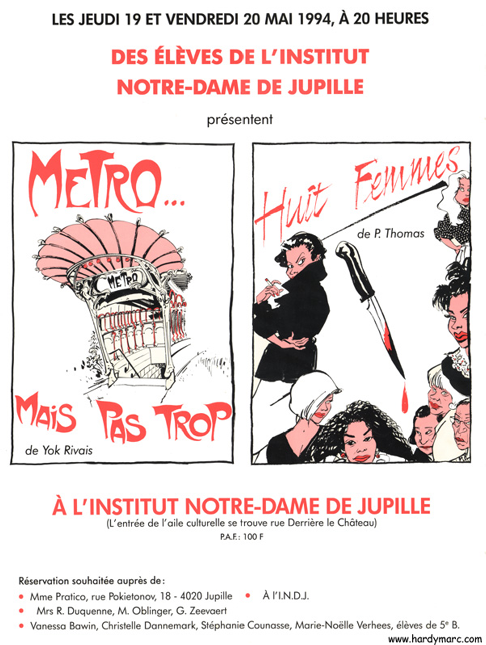 Affiche: Pour deux pièces de théâtre des éléves de l'Institut Notre -Dame de Jupille.
