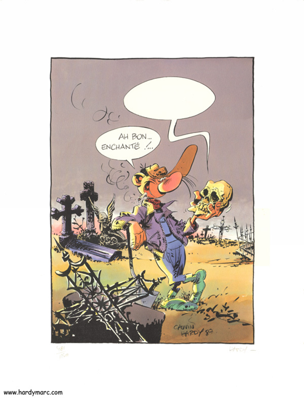Illustration numérotée et signée accompagnant le tirage spécial hors commerce de l'album n°3 "Morts aux dents". 1250 exemplaires.